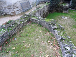 Le sol est encore marécageux. On a retrouvé des pieux en bois de frêne qui auraient pu servir de soutien. En outre, des relevés ont permis de mesurer la superposition de couches de remblaiements successifs qui serait comprise entre trois et quatre mètres. La base des murs est constituée de blocs liés par un mortier très résistant, comportant de nombreux galets et des pierres de calcaire provenant de la carrière du fort saint André à Villeneuve les Avignon.
