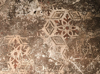 Le troisième étage où subsistent des restes de fresques constituait peut-être un corps de garde, et supporte la terrasse.